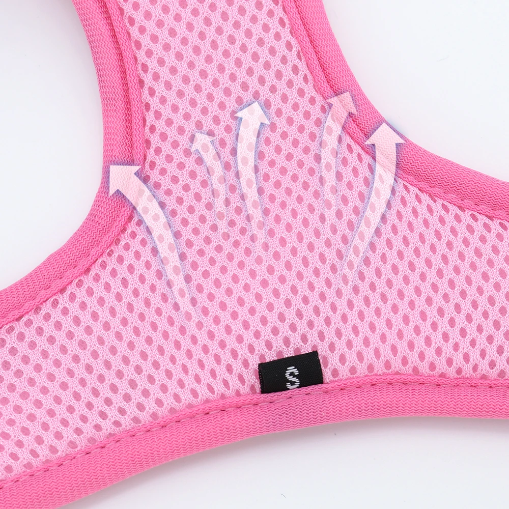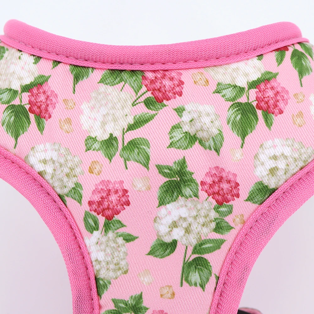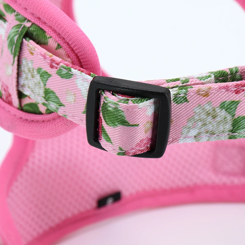 Adjustable Nylon Mesh French Bulldog Collar Harness Leash Set Cute Printed Puppy Cat Harness Vest Leash For Small Medium Dogs